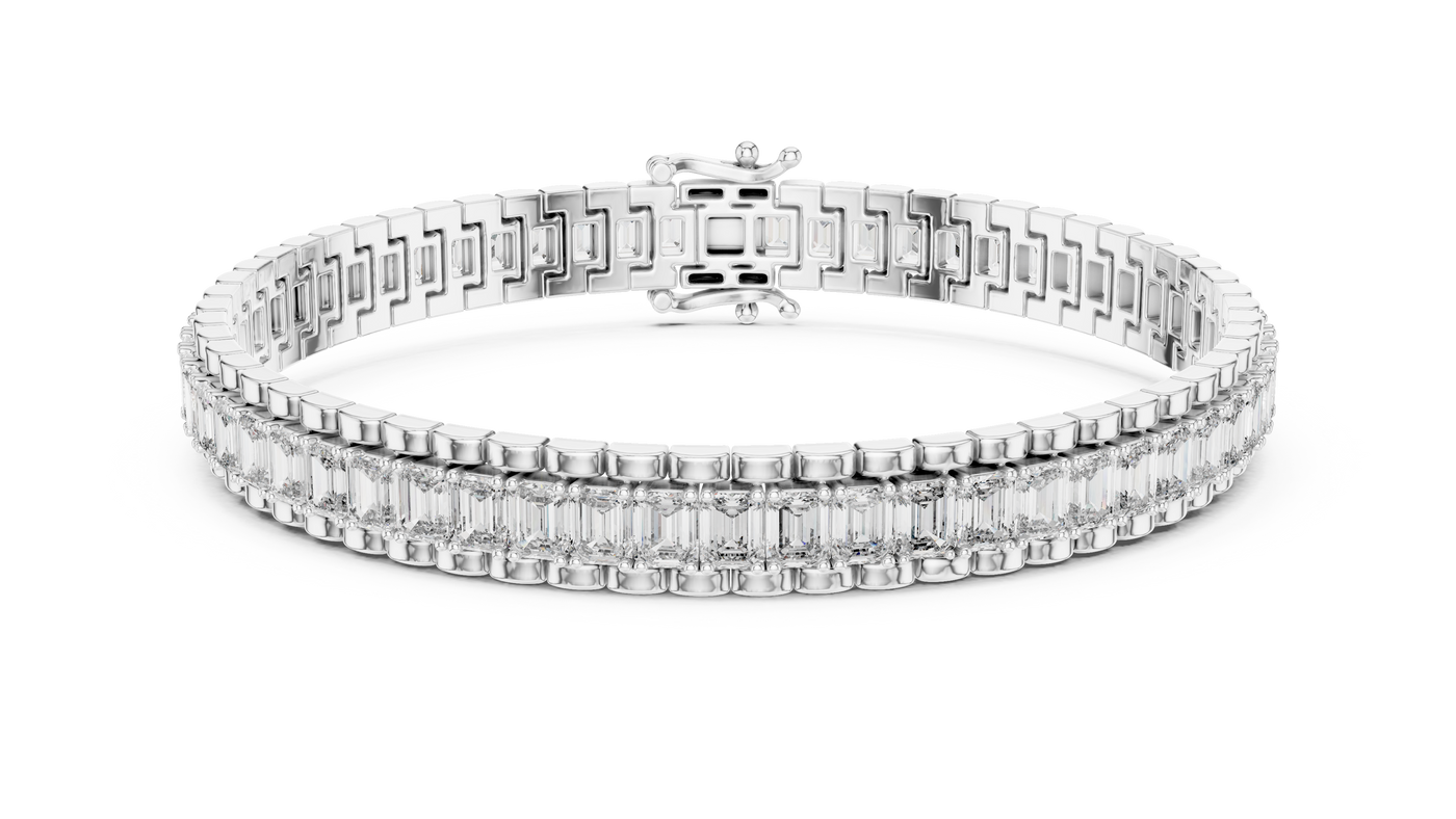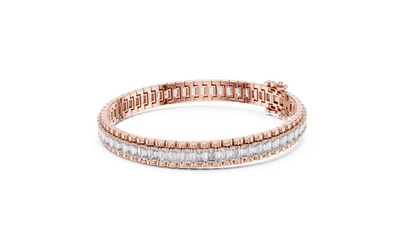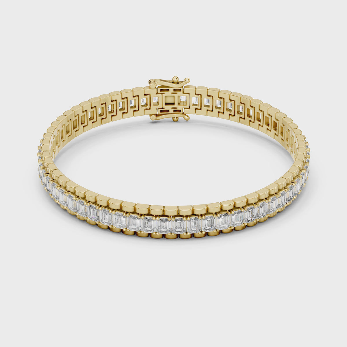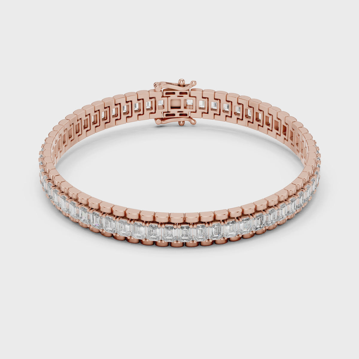 Expertly handcrafted in high-purity gold and platinum options, this bracelet showcases 60 lab-grown emerald-cut diamonds secured in a precision collet setting for exceptional sparkle, durability, and comfort. Designed for daily wear, weddings, parties, festive occasions, and luxury gifting, it delivers everlasting brilliance with contemporary appeal.