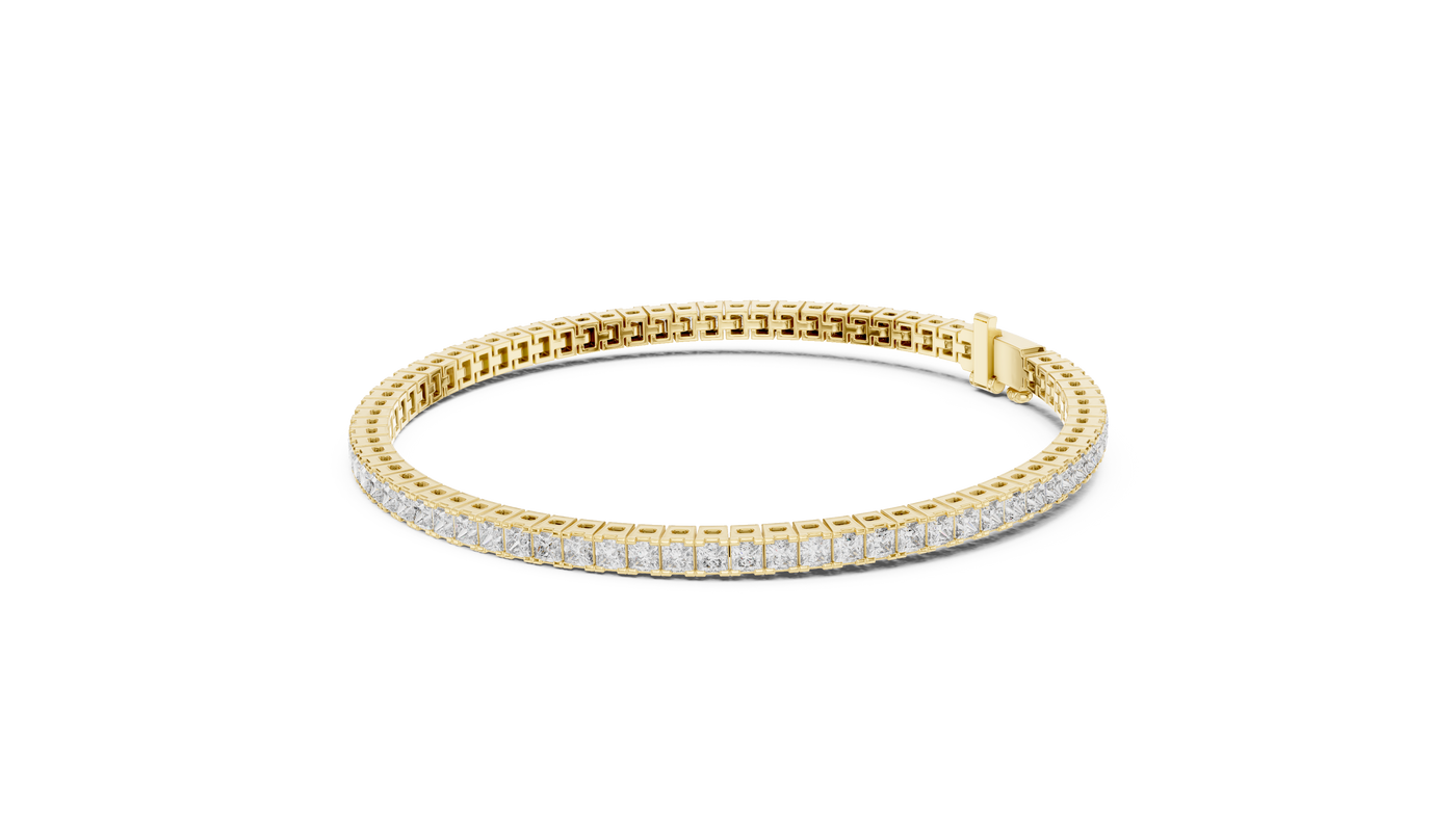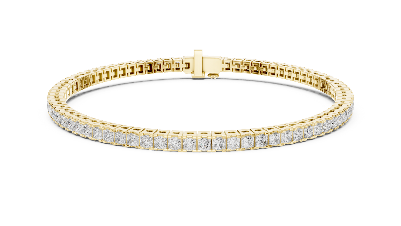 Designed for timeless elegance, this princess-cut diamond tennis bracelet blends modern luxury with classic sophistication. Inspired by sleek geometric symmetry, each lab-grown diamond is meticulously set to create a seamless line of brilliance that radiates refined beauty from every angle.