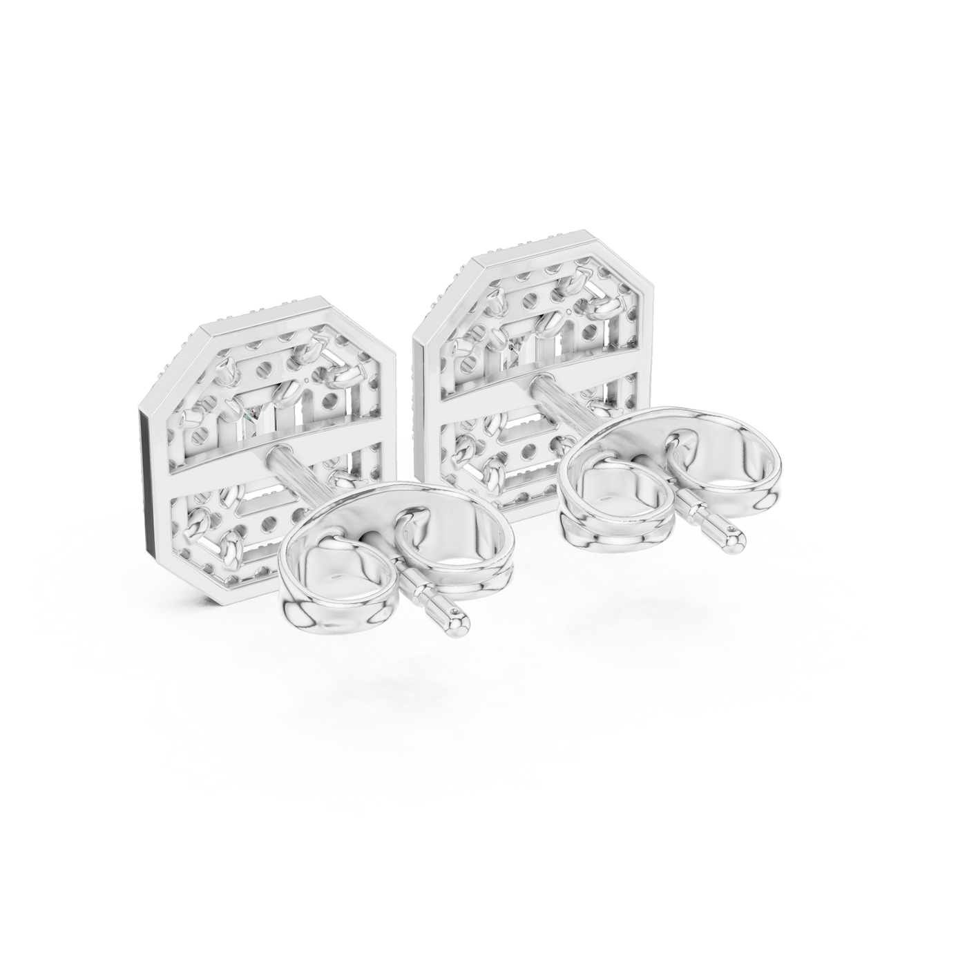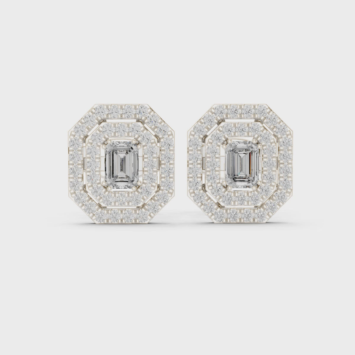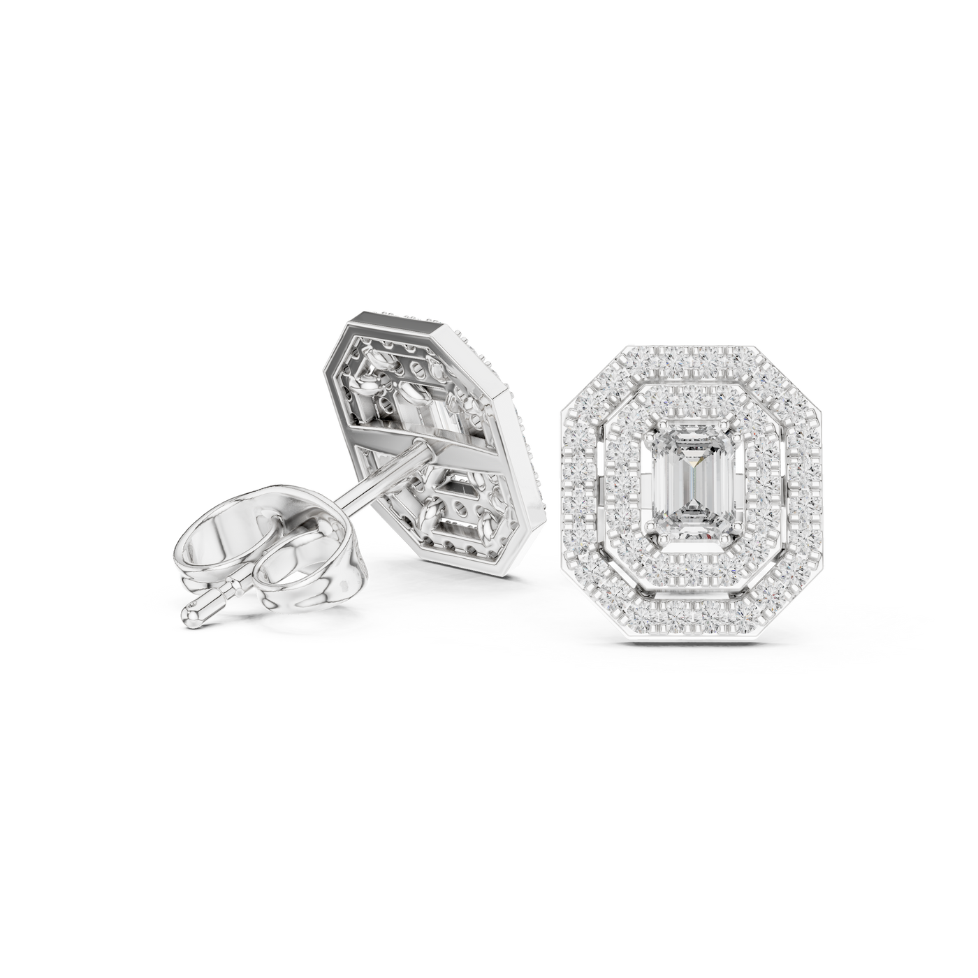 Designed with timeless elegance, these octagon halo stud earrings feature a captivating emerald-cut center stone surrounded by a shimmering micro-prong diamond frame. The refined geometric silhouette offers a modern yet classic aesthetic that elevates any look, from everyday sophistication to evening glamour. Each stone is meticulously set to ensure exceptional sparkle and long-lasting brilliance.