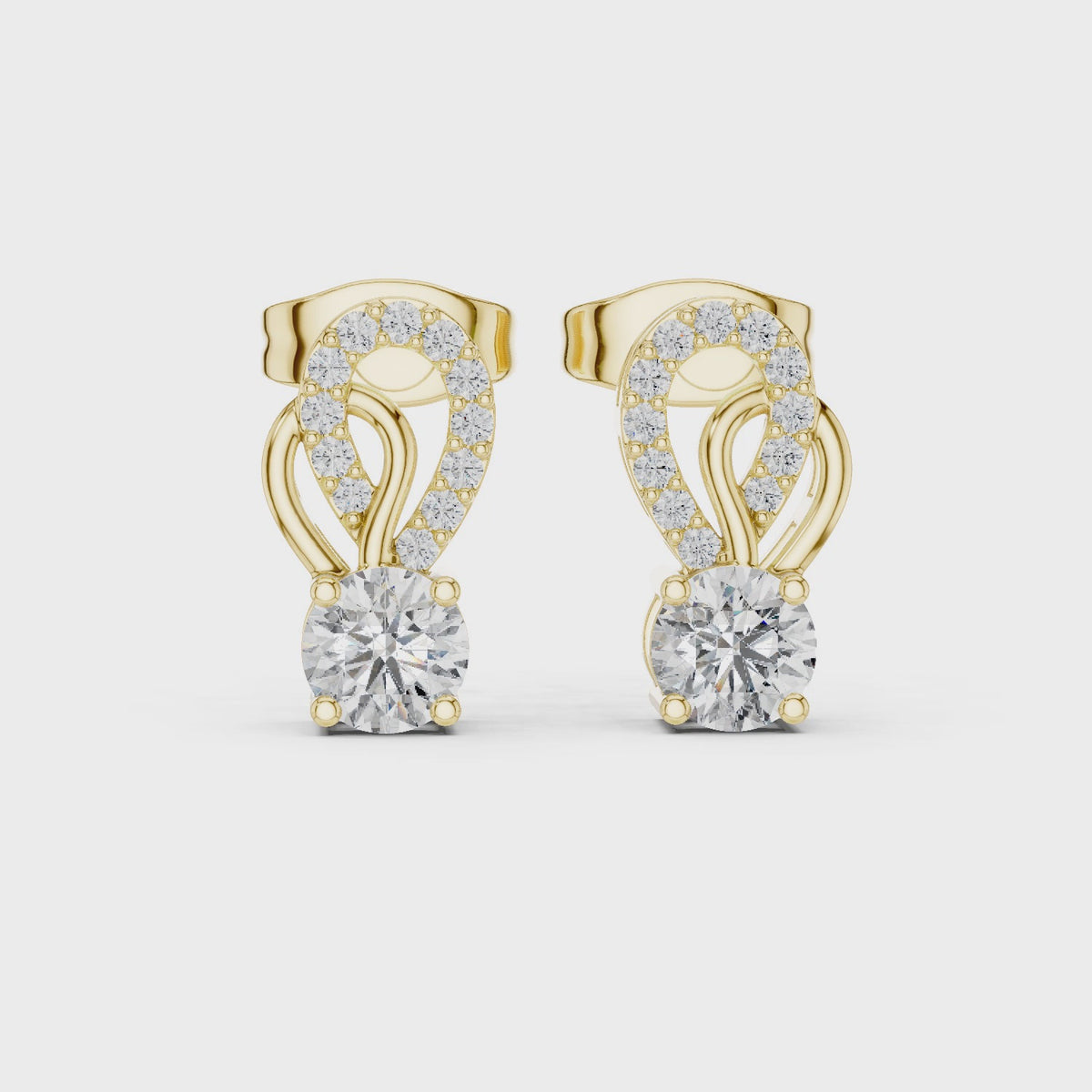Luxury Round Lab-Grown Diamond Drop Stud Earrings in 14K Gold