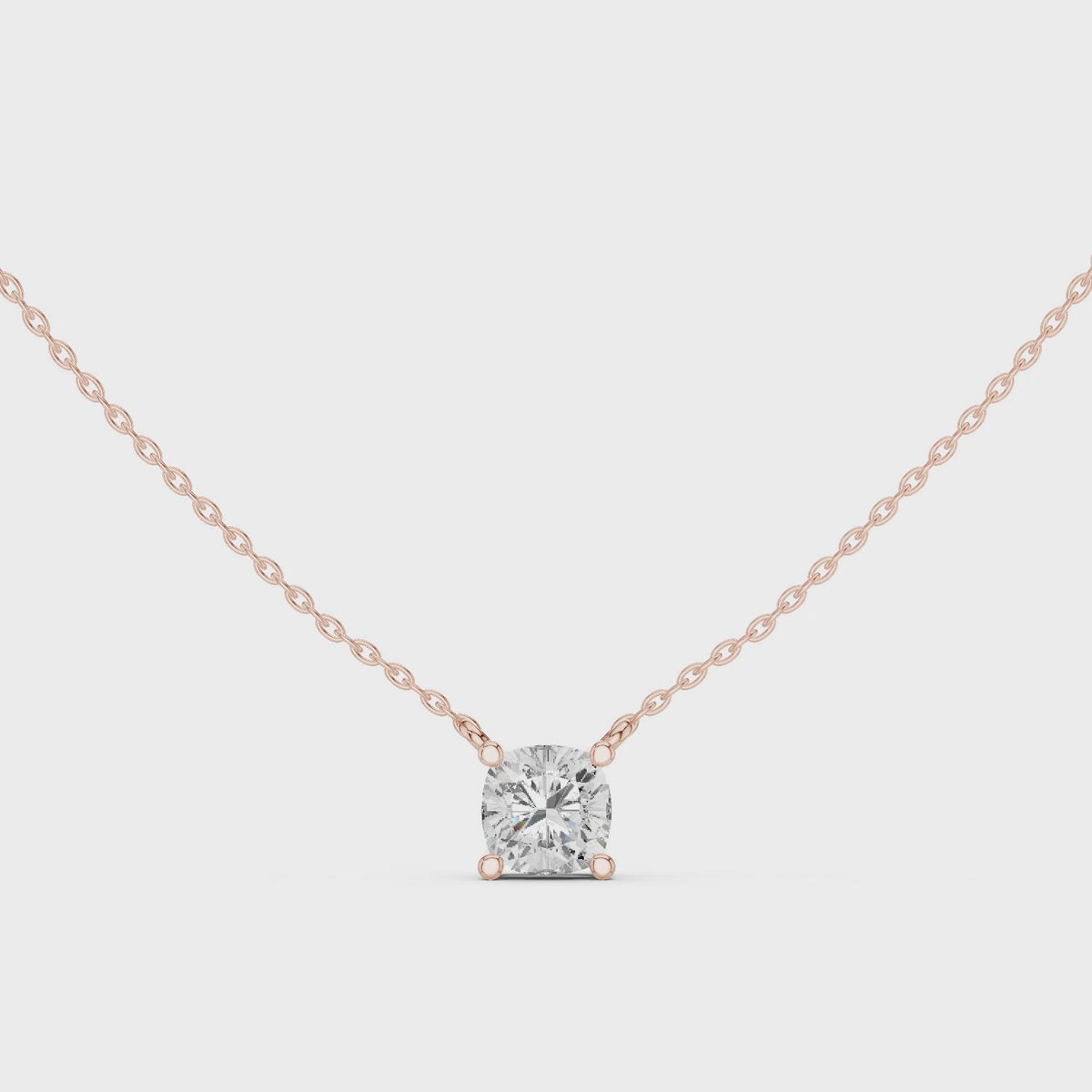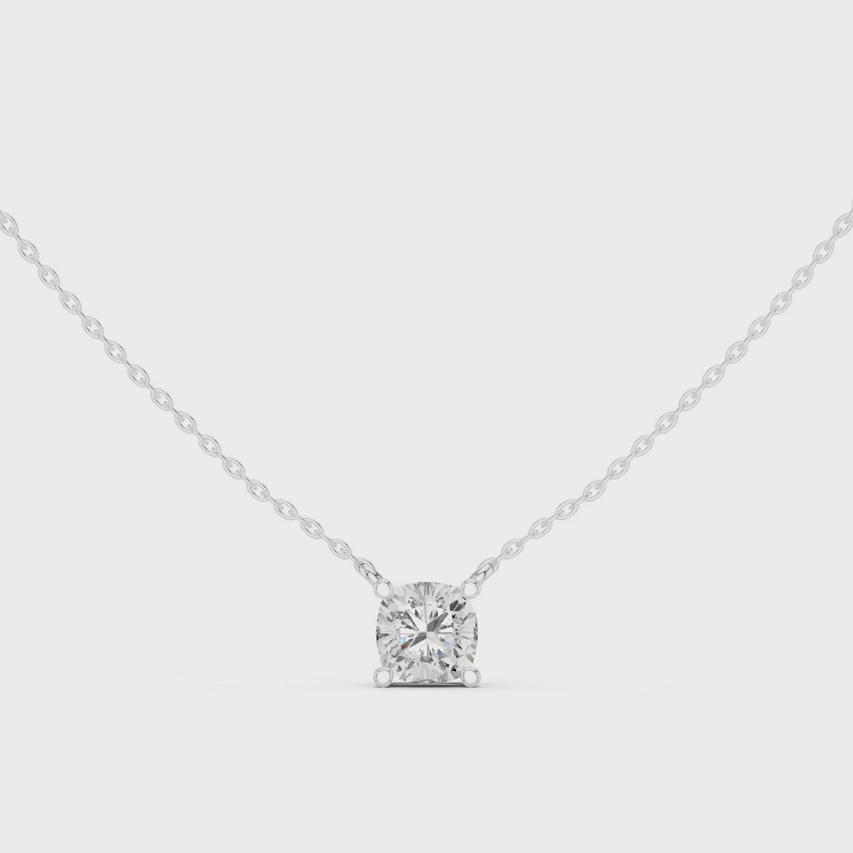 Inspired by modern minimalism and timeless elegance, this cushion cut diamond solitaire pendant showcases a refined design that highlights the beauty of a single, perfectly proportioned stone. The soft square silhouette offers a contemporary yet classic appeal, making it a versatile luxury essential.