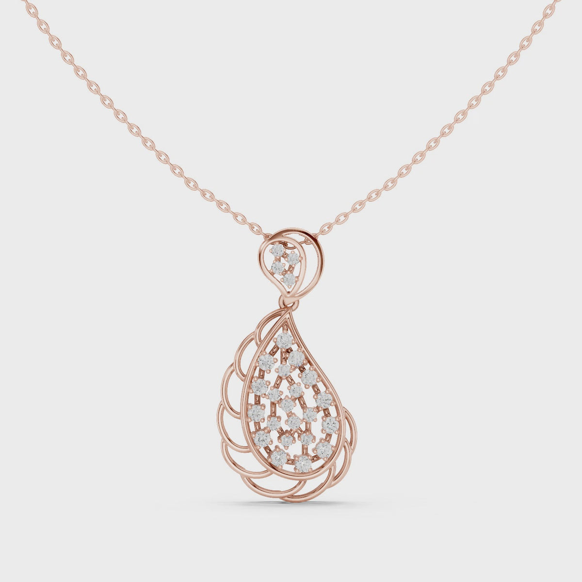 Inspired by the fluid elegance of nature, this teardrop diamond pendant captures timeless beauty through a refined floral lattice silhouette. Each curve is thoughtfully sculpted to enhance brilliance, while the cluster of lab-grown diamonds radiates a captivating sparkle that mirrors high-end couture jewelry.